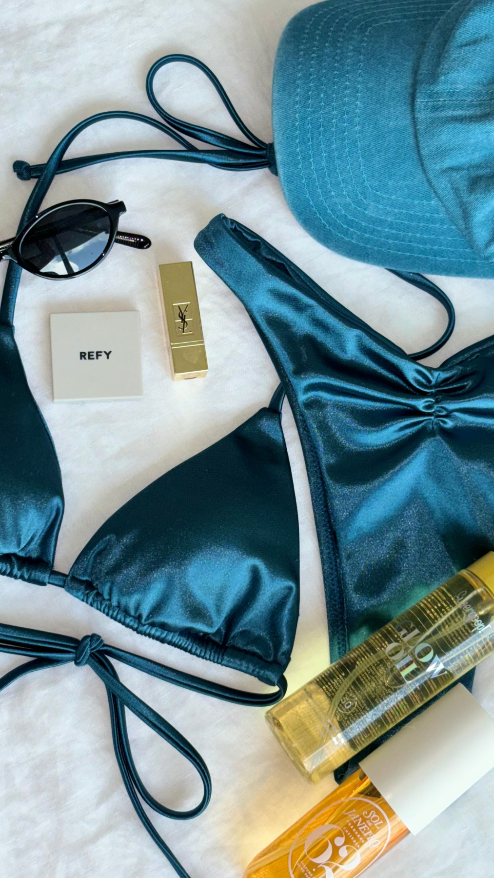 The Gia Top is a versatile halter designed to be styled multiple ways. Finished with subtle gathering and a smooth, second-skin feel, it’s designed to be flexible, moving with you from beach days that turn into golden hours.
